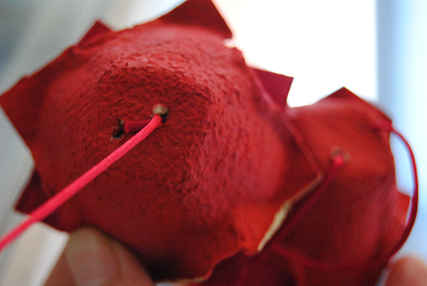 Podemos pintarlos de dos colores diferentes para combinarlos. Y les hacemos dos agujeros en la parte de arriba para pasar el cordel y así poder sujetarlas.