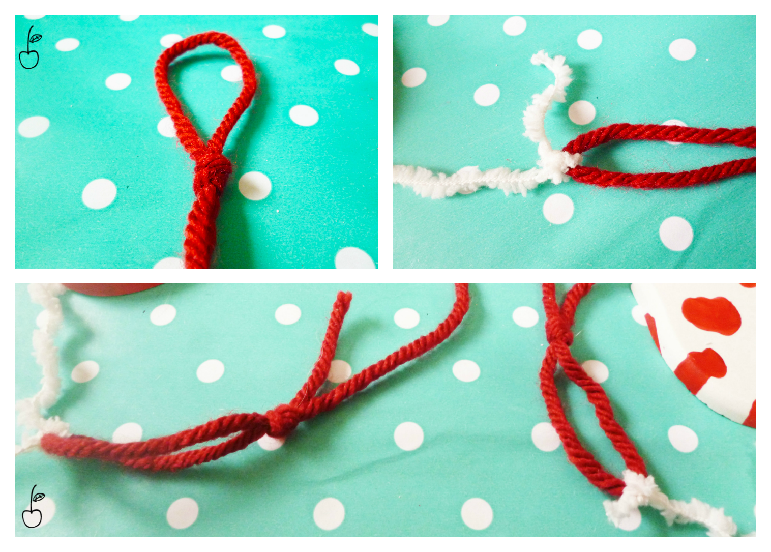 ? Una vez aquí sólo falta montar nuestra preciosa guirnalda! Así que pasamos el cordel, la lana o lo que queramos, así: