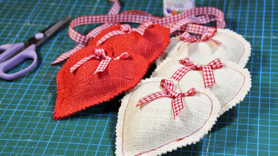 También puedes confeccionar esta guirnalda con telas estampadas en colores rojos, verdes y dorados, la técnica es la misma que he utilizado con la tela arpillera y el resultado es fantástico, al final del vídeo puedes verlo.