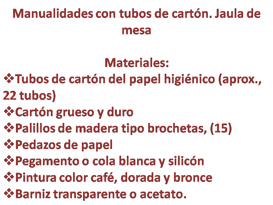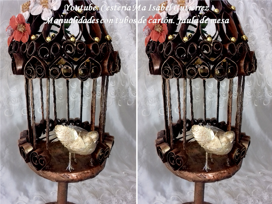 Y está en nuestras manos practicar, enseñar y difundir el reciclaje; y que mayor estímulo que hacerlo de forma creativa, transformando la "basura" en lindos artículos de ornamento; como esta bella jaula de mesa, elaborada con tubos de cartón del papel higiénico, cartones, papel... Realmente muy fácil de hacer y que además de decorar tu hogar, también la puedes usar, con la decoración adecuada, como centro de mesa de todo tipo de celebraciones.