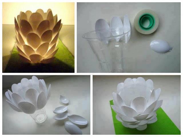 Vea cómo hacer una lampara con cucharitas de plastico.