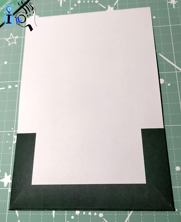 Ponemos cinta de doble cara en estas tres solapitas que hemos creado y las pegamos a la parte trasera de la pieza que va a ir en nuestra portada:
