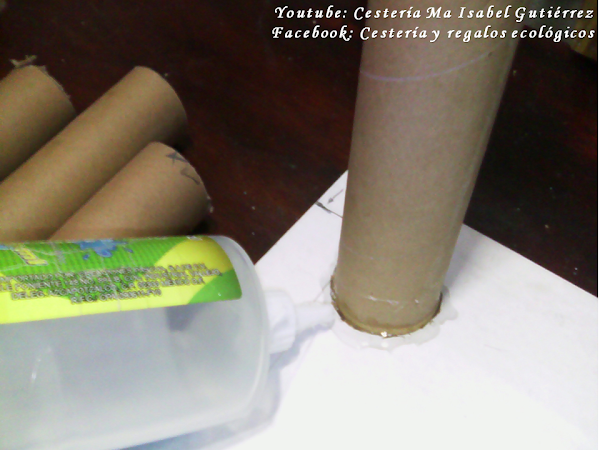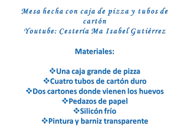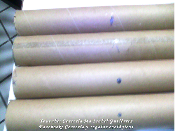 Empezamos por cortar cuatro tubos de cartón que serán las patas de la mesa. La altura es opcional, yo las hice de 19 pulgadas...