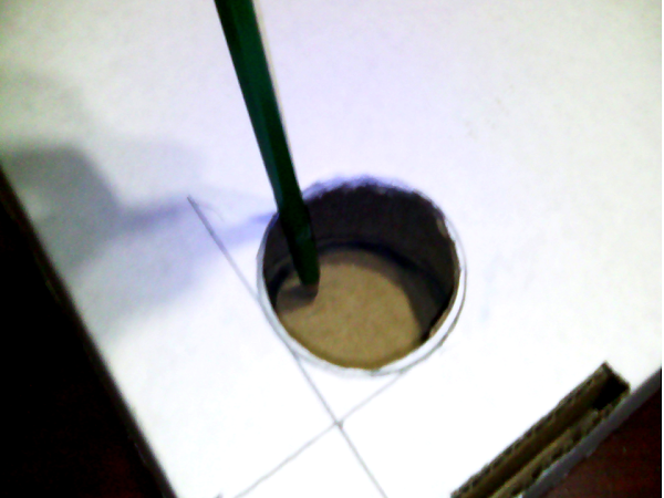 Es momento de montar las patas a la mesa. Ponemos bastante silicón en la parte superior de los tubos de cartón y metemos hasta que tope, luego, aplicamos mas silicón por la parte externa...
