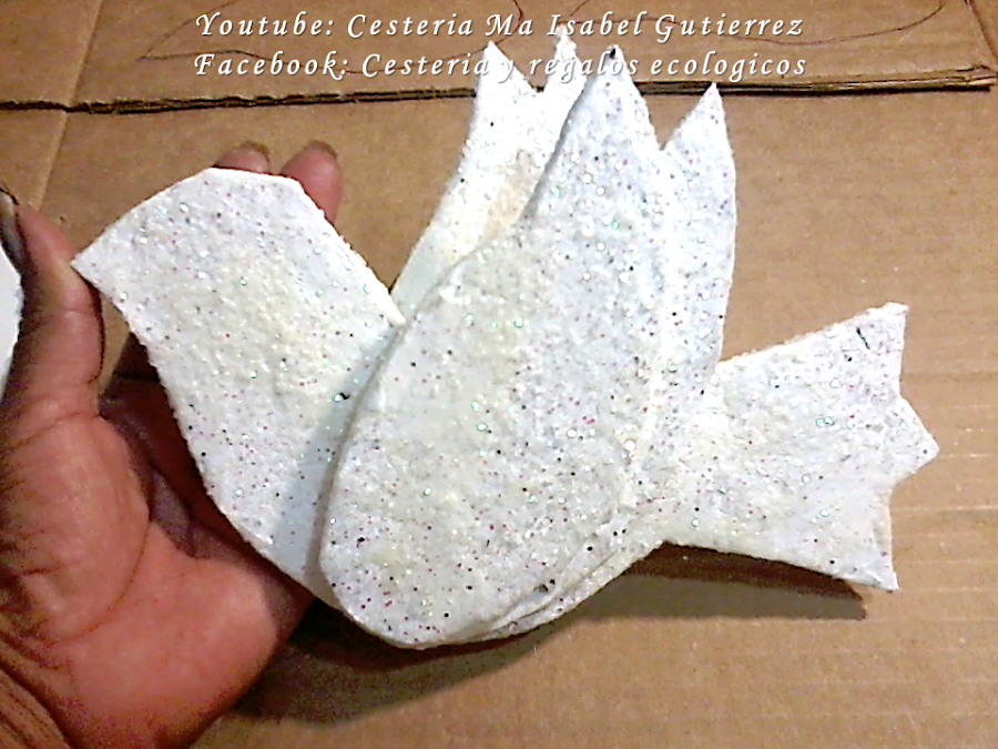 Cortamos tres piezas del cuerpo de la paloma y cuatro piezas de las alas...