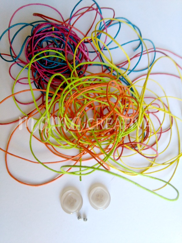 En primer lugar cortamos dos cordones, hay que tomar la medida de la muñeca. Cada cordón debe medir una medida y media de la muñeca.