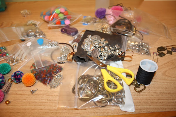 Ya veis como funciono: caos absoluto, todos los abalorios fuera y encima de mi mesa y una vez que lo visualizo todo, entonces decido más o menos como lo voy a hacer.