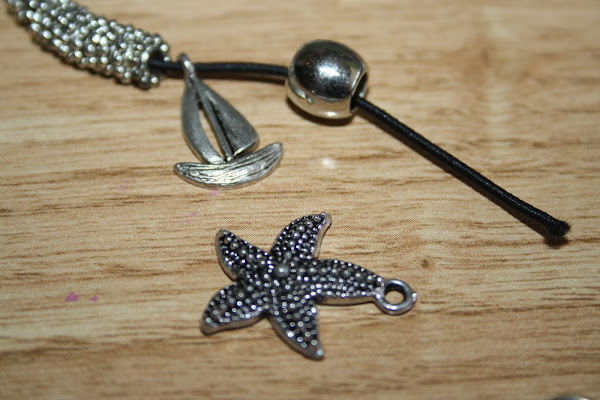 Una vez colocados los abalorios, meteremos la anilla grande de la cual colgaremos los charms marineros.