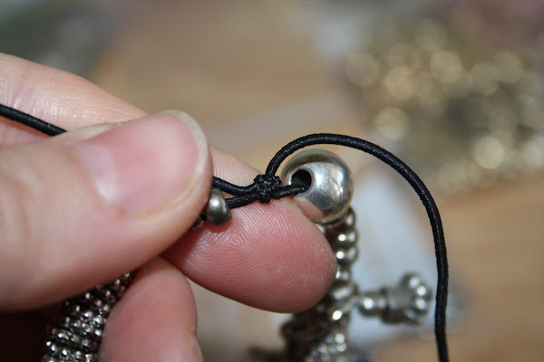 Terminaremos nuestro diy cerrando la pulsera con unos cuantos nudos, y escondiéndolos bajo el abalorio grande redondo.