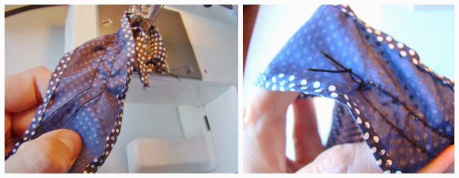 8. Después coseremos un pespunte por encima, que tiene que coincidir con el que hemos hecho para asegurar la goma