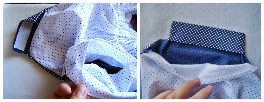 9. Coseremos los tirantes traseros con el delantero, primero la parte exterior con un pespunte a máquina y despúes la parte del forro la uniremos con un pespunte por encima