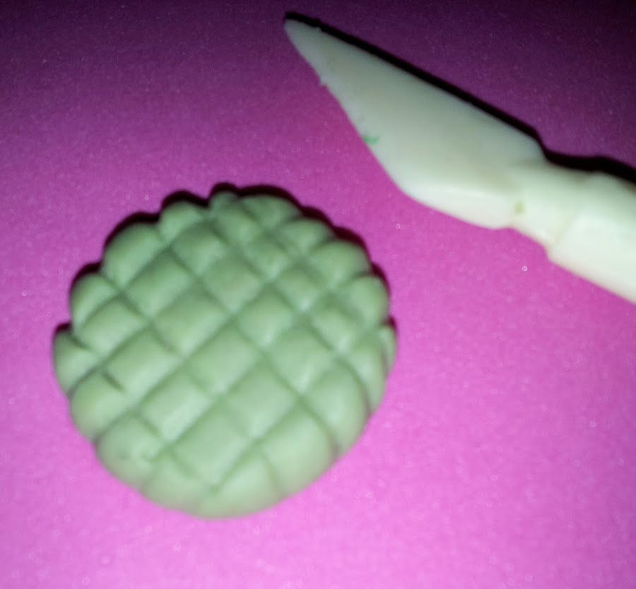 ⓸ Los círculos realizados en el paso inicial, son cortados en su centro con una forma circular mas pequeña, con la idea de colocar en ese hueco la forma redondeada y texturizada que simula la malla de la raqueta.
