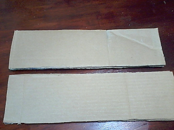 Cortamos tres piezas rectangulares de cartón grueso y duro, del mismo tamaño, las medidas son a tu gusto...