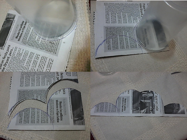 Vamos a empezar por hacer la figura ondulada que lleva arriba, para esto necesitamos cortar una tira de papel del ancho de los rectángulos de cartón. Doblamos a la mitad este papel, y ayudados de algún recipiente redondo empezamos a delinear medios círculos empezando por un extremo del papel, recortamos y desplegamos el molde...