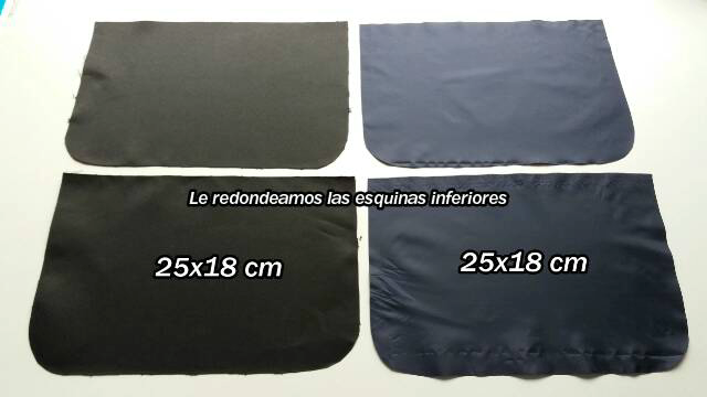 * Dos piezas para el forro de las mismas medidas 25x18 cm.