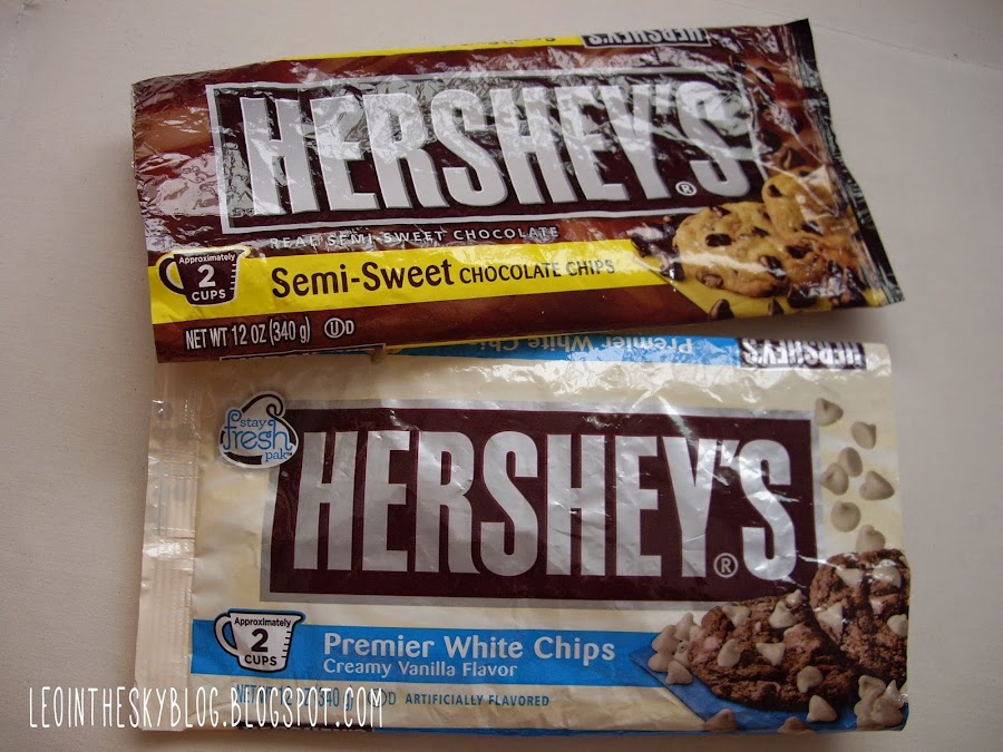 Primero de todo, hacer unas galletas, magdalenas o lo que más os guste con las chispitas de chocolate abriendo con cuidado el envoltorio, cortándolo lo más recto posible con unas tijeras.