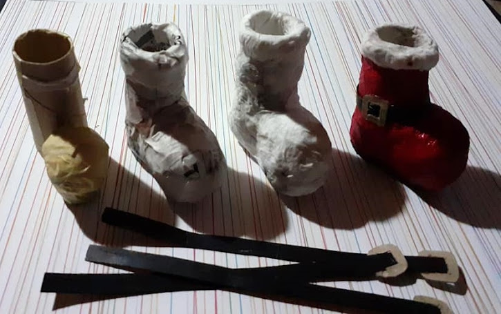 Una vez seco tenemos dos opciones para blanquear la bota, una es pintarla de blanco para que los colores finales sean más brillantes o darle una última capa de cartapesta con papel de cocina o papel higiénico.