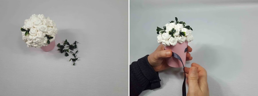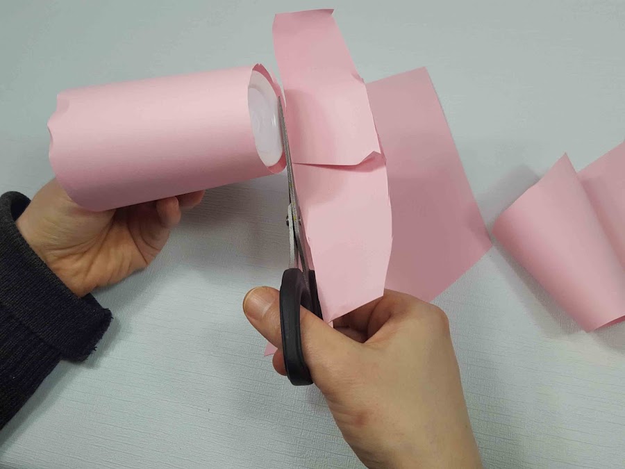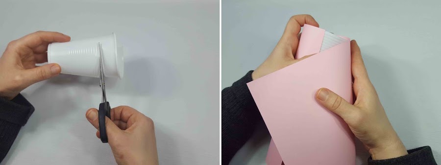 Se corta el vasito. Lo envolvemos en el papel y cortamos todo el sobrante.