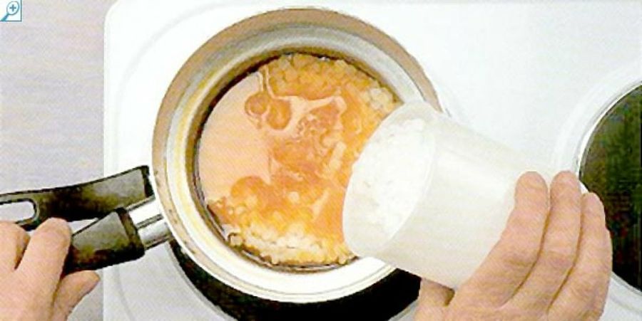 Calienta de nuevo la cera hasta 93º C. Rellena cuidadosamente la cavidad con cera caliente, pero sin sobrepasar el nivel original o resultará difícil liberar la vela del molde. Da unos pequeños tirones a la mecha para permitir que el aire salga de la cavidad. Deja enfriar a temperatura ambiente o con abundante agua.