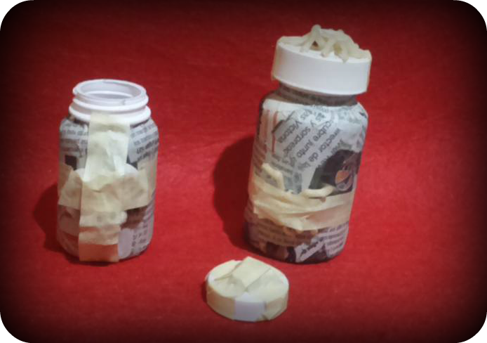Los botes que he usado son de plástico , en realidad nos valen también de otros materiales , lo interesante es que podamos cerrarlos y así darles uso , que no sean sólo adornos para el Halloween.