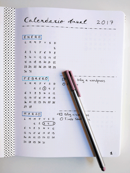 Luego pondremos el CALENDARIO ANUAL dónde apuntarás las cosas más importantes y para los meses futuros.