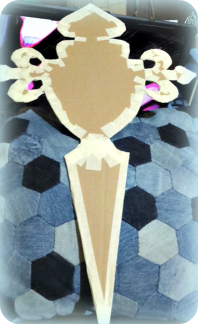 Le he puesto tres capas para asegurarme de que esté bien rígido pues he tenido que añadir piezas de cartón para completar el diseño , y la cruz de Santiago debe estar firme con el resto del conjunto