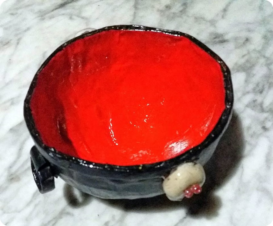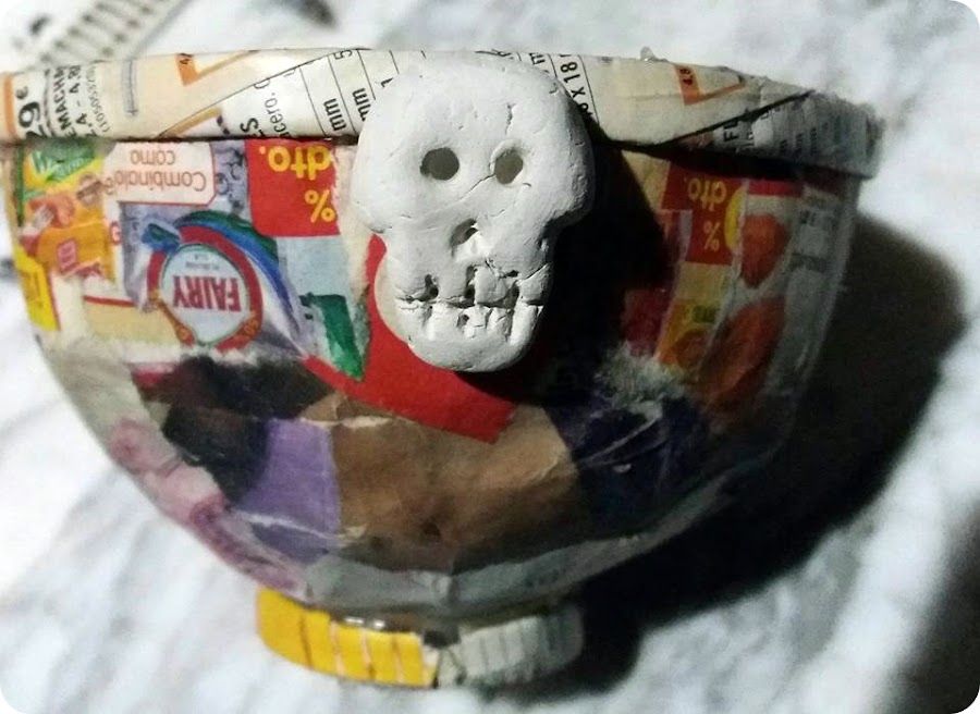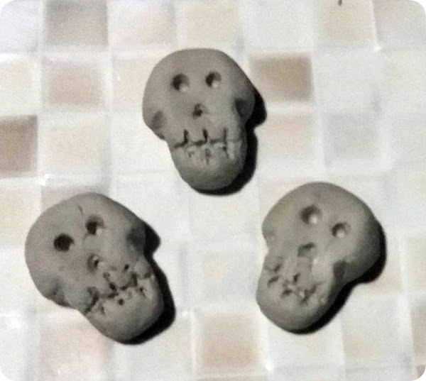 Como decoración , el caldero llevará dos calaveritas , las haré con arcilla y necesitan de un tiempo de secado , por eso las he hecho antes para tenerlas secas cuando las quiera incorporar al trabajo.