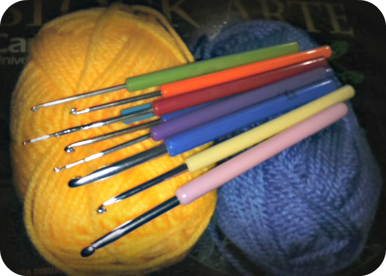 Estos son mis colores y estos los crochets que me he comprado en Lidl