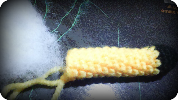- cambiamos el color de la lana , ahora seguimos con la amarilla , seguiremos hasta alcanzar la medida que necesitamos, eso es desde la 5ª vuelta hasta la 12ª vuelta un pto bajo por cada punto,