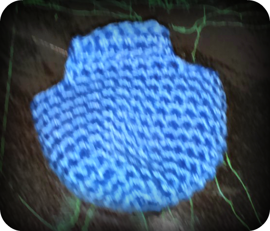 22ª vuelta ; quitamos el crochet tiramos del hilo y con una aguja lanera cerramos el círculo
