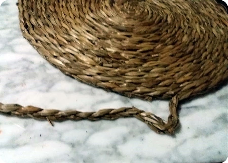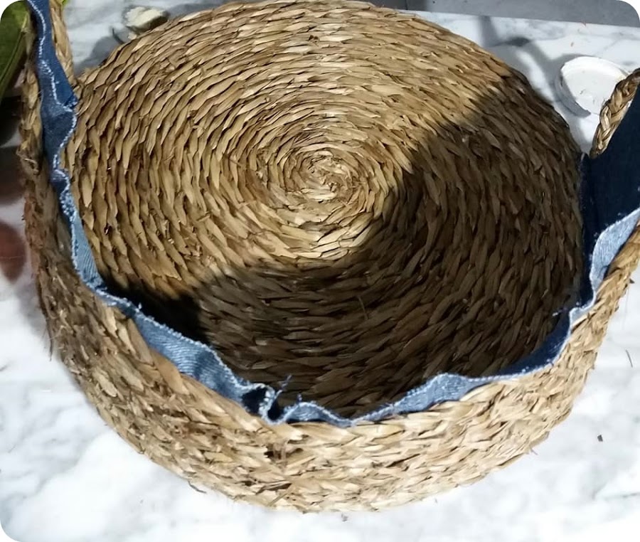 Hay que rematar con un trzozo de tira trenzada a ambos lados del capazo para darle una terminación más bonita.