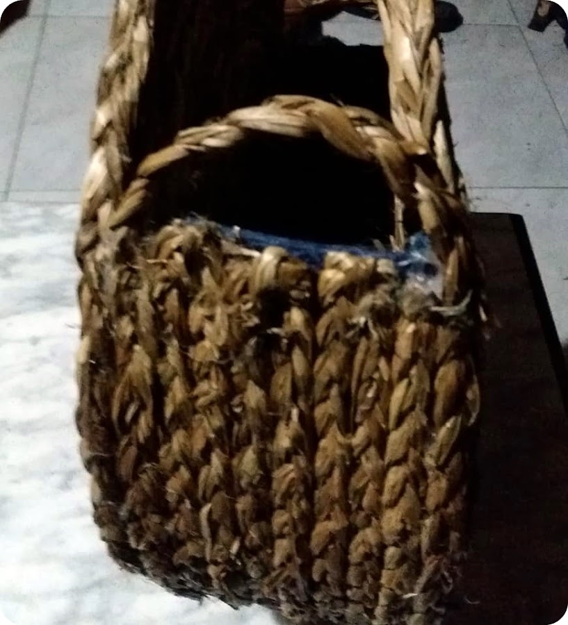 Una vez esta tira está terminada , la he unido a las piezas enteras, primero una y luego a la otra , de esta manera , el capazo va tomando forma.