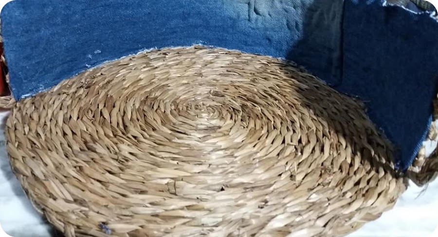 Para terminar el capazo , es necesaria , una funda de un tejido resistente y que le vaya al tono y un cinturón , para que haga las veces de asa y poder llevarlo colgado del hombro.