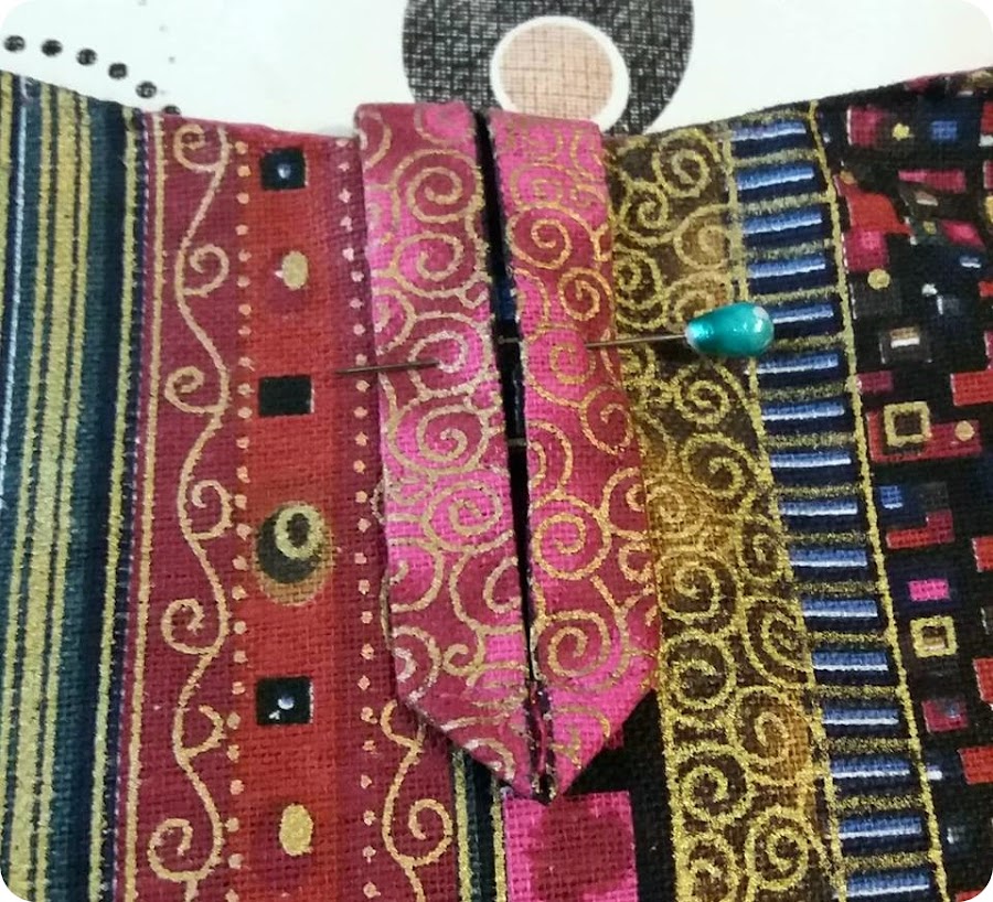 He enfrentado las dos piezas , la estampada y la fucsia , las he cosido , y así va la cosa...