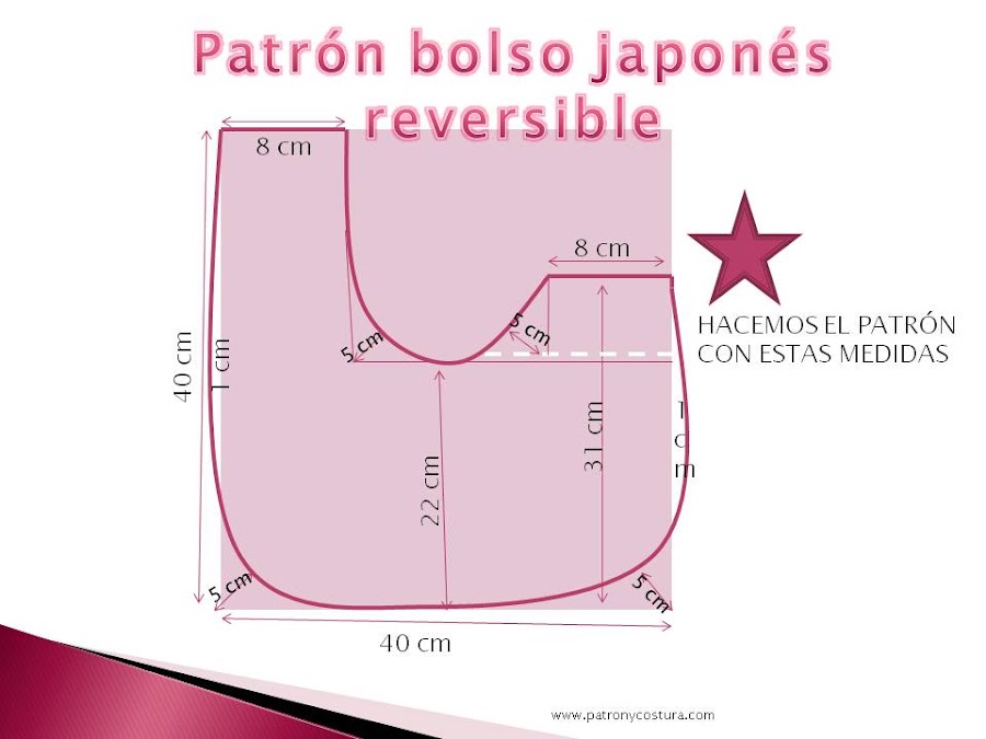 Para empezar he dibujado mi propio patrón al que he modificado alguna medida porque los 22 cm de altura me parecieron pocos para mi gusto ,( soy más bien de bolsos grandes....)