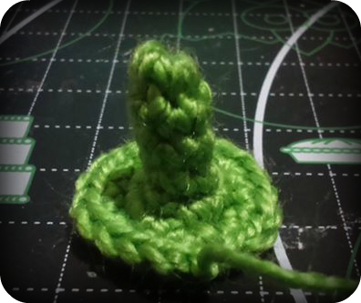 Esto ya tiene la forma que buscamos , sólo nos queda hacerle el "rabito" y para ello necesitamos el hilo de crochet verde.