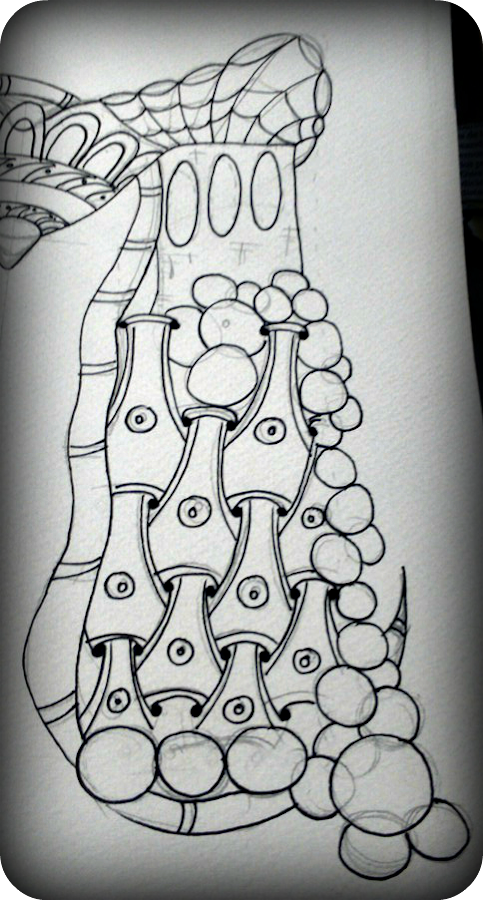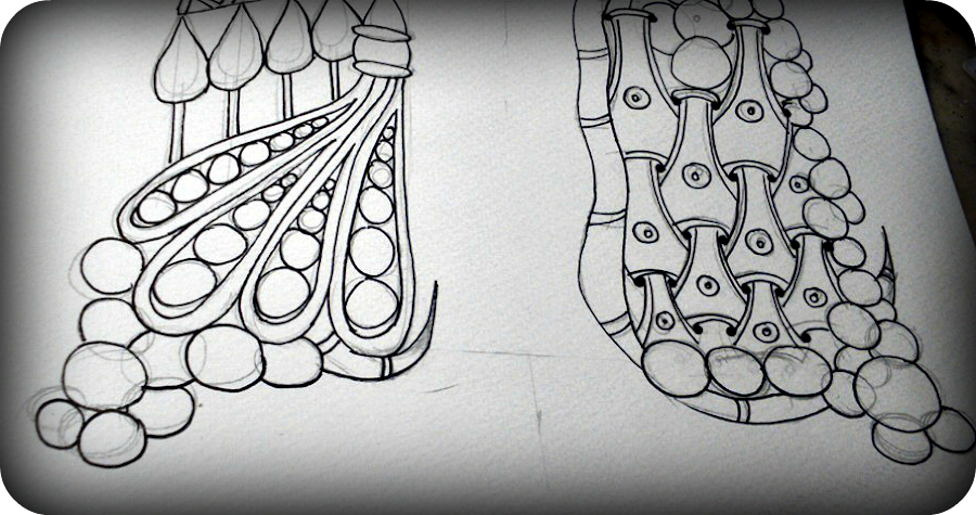 Los primeros esbozos , cuando esté más o menos satisfecha , con un marcador permanente negro repasaré todos los contornos que considere oportuno