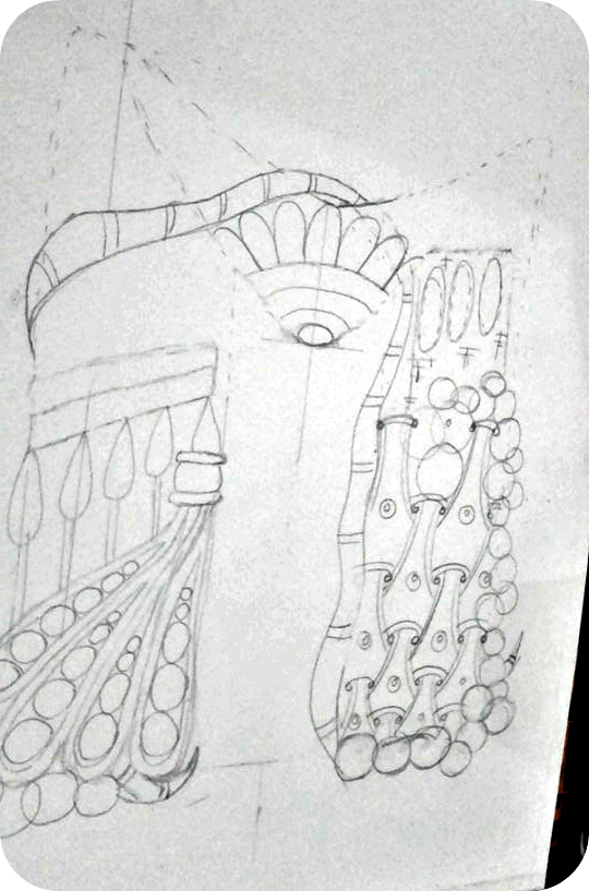 Los primeros esbozos , cuando esté más o menos satisfecha , con un marcador permanente negro repasaré todos los contornos que considere oportuno