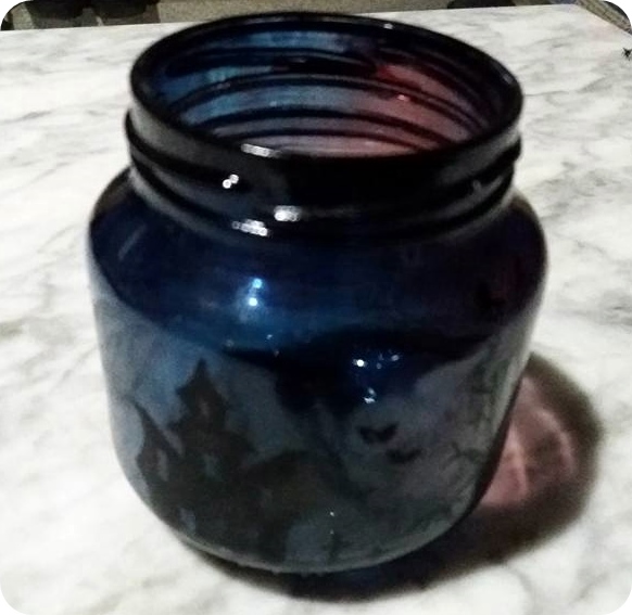 Lo dejamos que seque , y enseguida podemos con las vitrales dar color al interior del frasco de cristal.