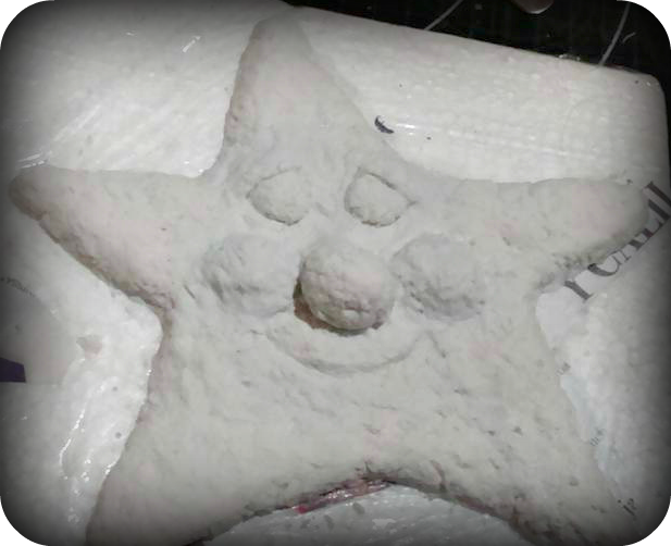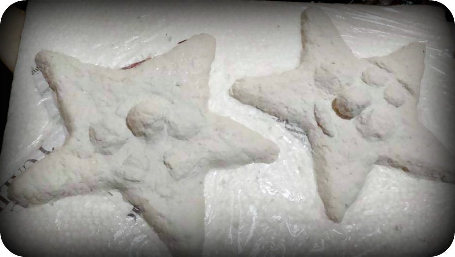 Vamos a dar forma a nuestras estrellas con la pasta de papel, cogiendo pequeñas cantidades de pasta vamos cubriendo nuestra plantilla .