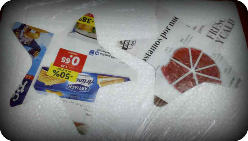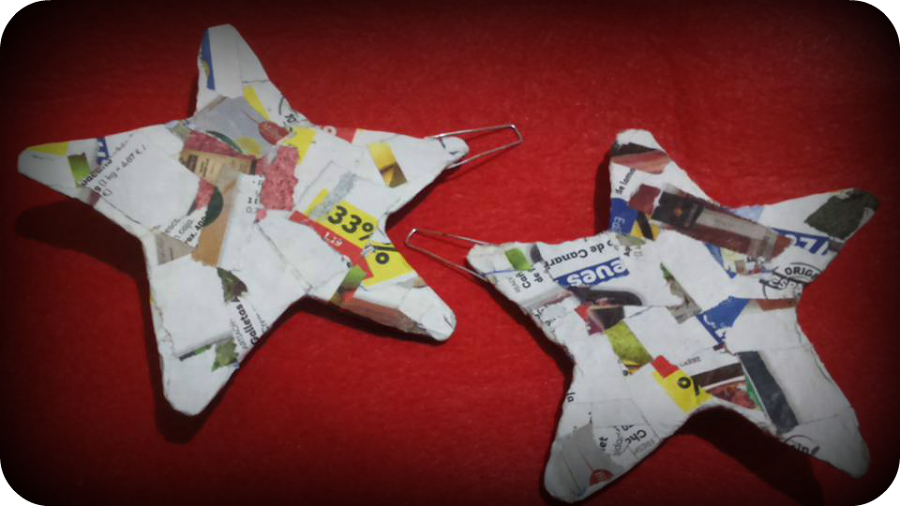 Mientras tenía el papel en el agua , he aprovechado para dibujar la plantilla de la estrella en un trozo de cartón , lo he recortado y he marcado el contorno sobre una hoja de cualquier revista o papel , mejor si reciclamos ,