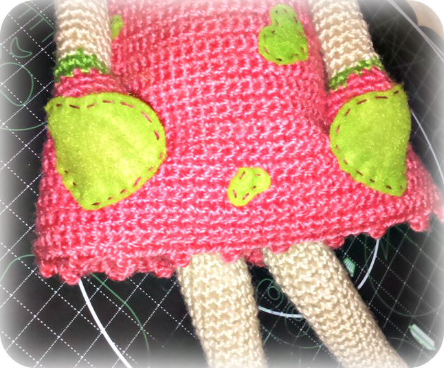 -Hilo de crochet de color rosa ,( el mismo que he usado para las patitas y en las orejas ),