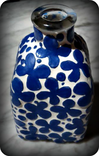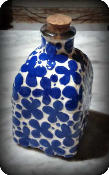 Puede quedar así o podemos darle a toda la pieza un barniz cerámico , eso hará que sea más fácil la limpieza , y así podremos usar la botella .