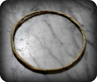 Antes de nada , como no tengo un aro que pueda utilizar , voy a dar forma circular a un trozo de alambre, como el mío es un poco fino le he dado dos vueltas, , y me he ayudado de una botella para que la forma fuese la correcta,
