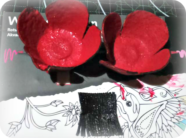 Una vez esté todo seco , sólo nos queda hacer el montaje, , primero los pétalos con un punto de silicona , de manera que se intercalen los espacios , y luego los pistilos, del mismo modo , con silicona o con cualquier otro pegamento.