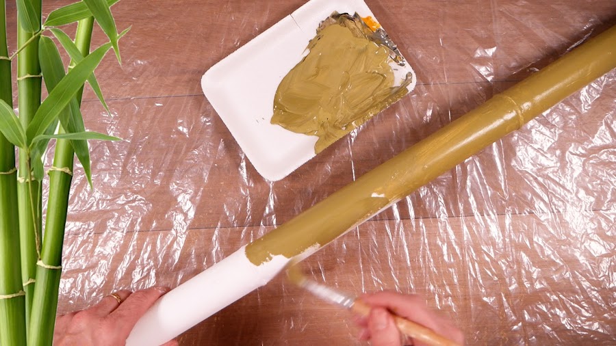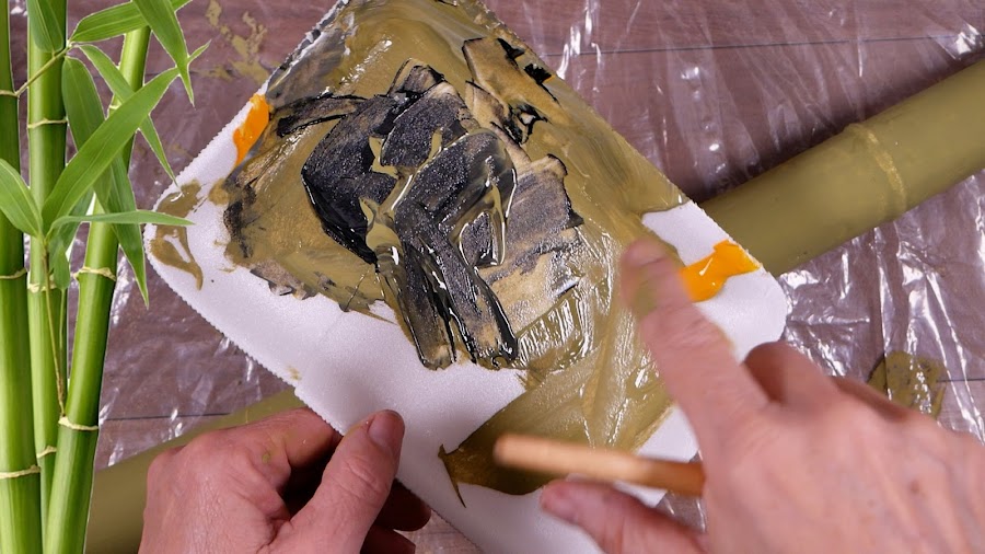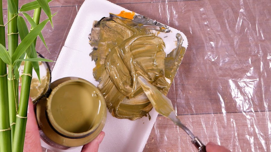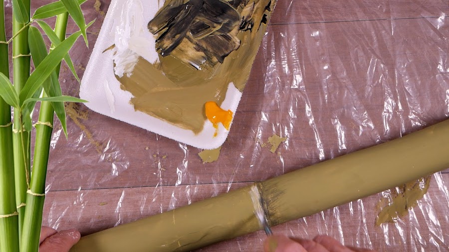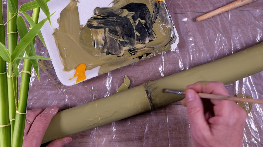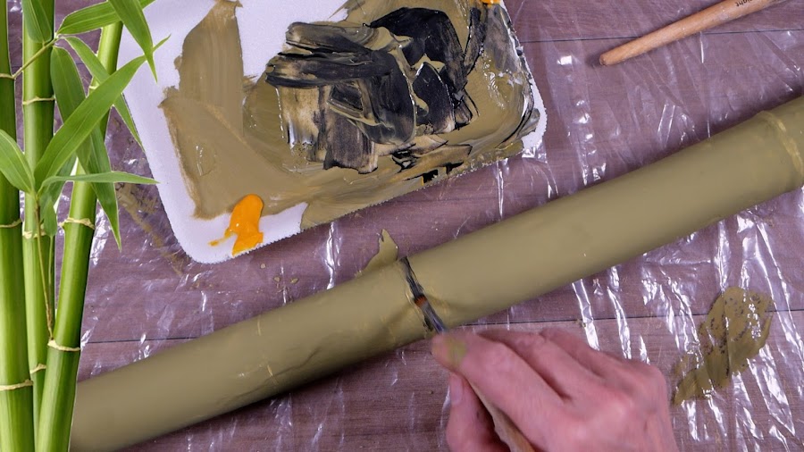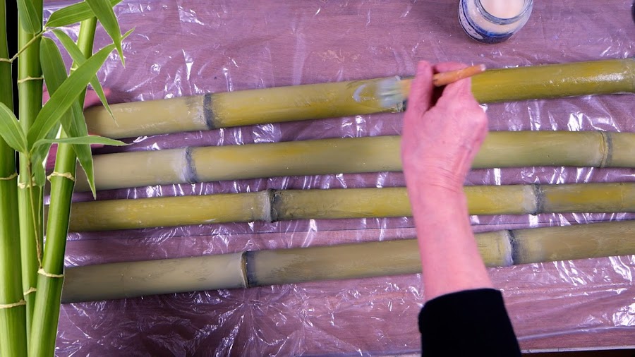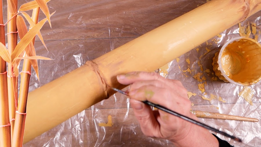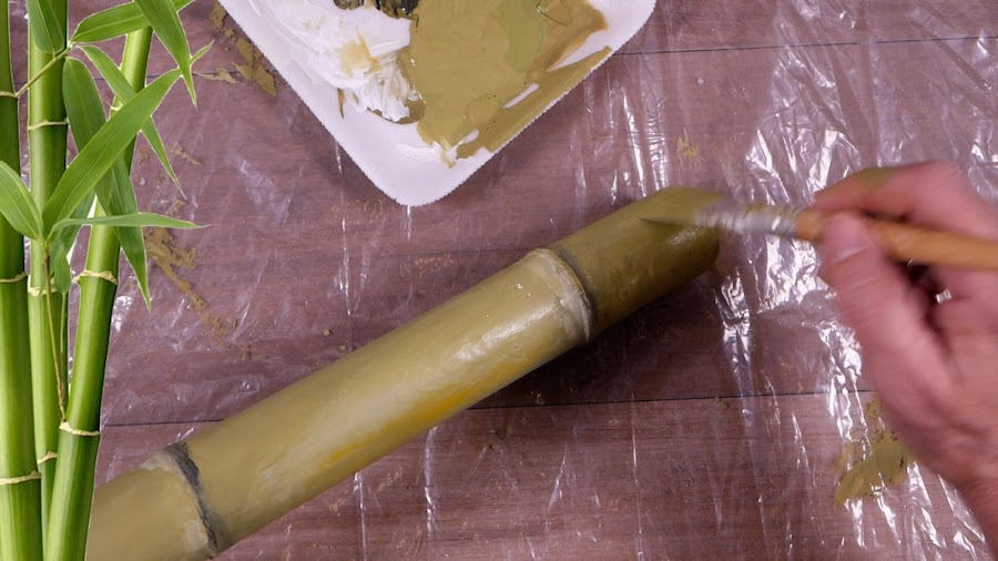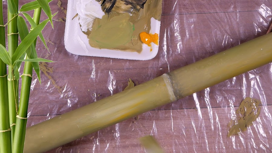Con este color pinto las cañas y en el mismo momento trabajo sobre los nudos.