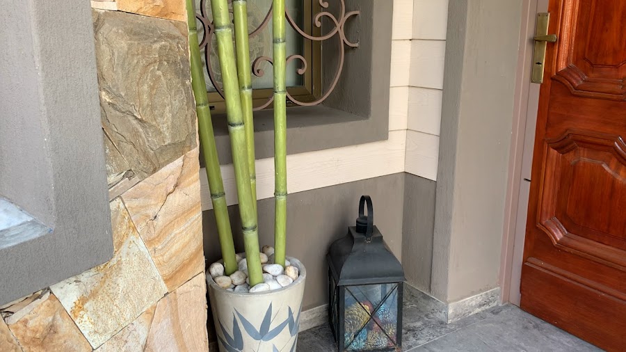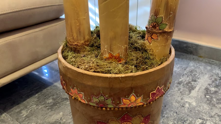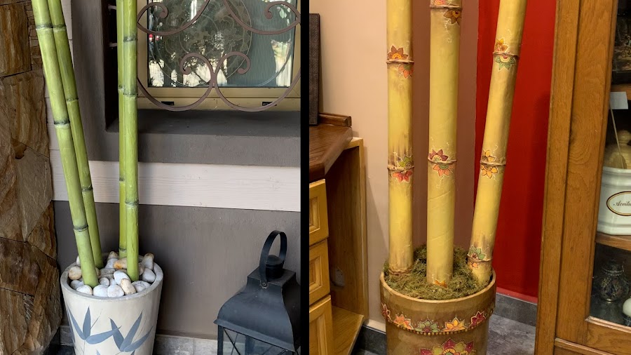 Y así ya están listas para lucirlas las caes de bambú y la maceta. Ideal para la entrada de nuestra casa o para vestir un living.