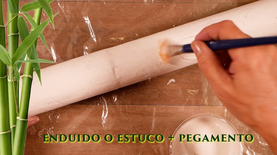 Después le pase a cada uno de los tubos largos con pincel una mano de una mezcla que realicé con enduido o estuco y cola vinílica y al secarse es necesario lijarlos.