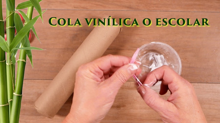 Los moje en cola vinílica abundante y coloque también cola vinílica en la zona del tubo a cubrir.