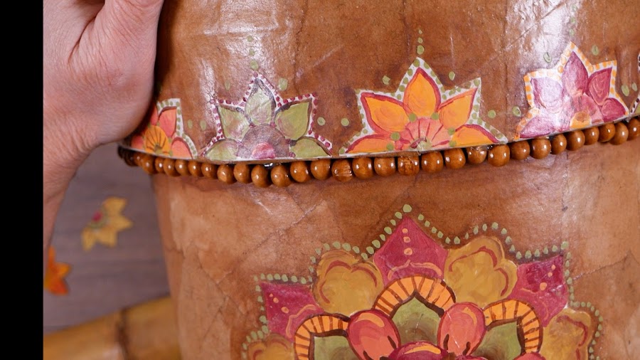 Como terminación y con pintura acrílica color cremita realicé un puntillismo alrededor de las flores y algunos sobresaliendo imitando ramas.